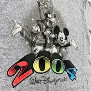 Walt Disney World Kids Vintage Gray 2004 Mickey Goofy Donald Pluto T-Shirt Sz 4T