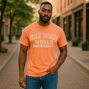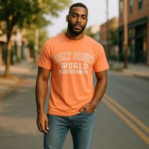 Walt Disney World Mens Shirt Size Medium Est 1977 Orange Distressed NEW