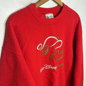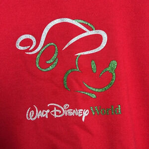 Vintage, Walt Disney World • Mickey Mouse Christmas Glitter Graphic Crewneck Sweatshirt