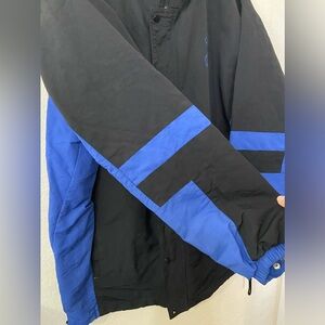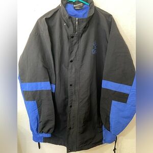 Oversized Walt Disney World black and blue vintage coat. Stripe detail on sleeves and embroidered Mickey Mouse on the chest. Inside has mesh. No hood. Very good condition. I noticed a few light marks on the black while folding it up after photos. Size XL Men’s sizing but unisex design