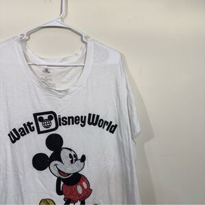 Gently worn women's plus size Walt Disney World Mickey Mouse Rhinestone Graphic Short Sleeve Athletic T-Shirt. Relaxed fit, lightweight material, crew neckline, curved hem.Please review all photos for any signs of wear-pictured as is. Disclaimer: Any items with any wear/staining has not been treated, and unsure of ability to remove/treat condition. Comes from a smoke free home, bundle with other items to save & minimize shipping cost.