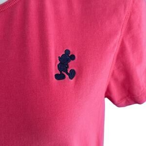 Peachy Pink T shirt with Mickey Mouse and "Walt Disney World" embroidered in blue.