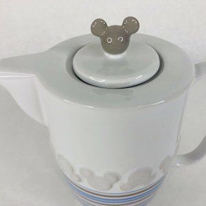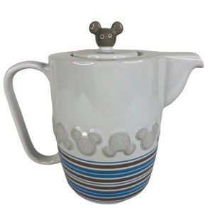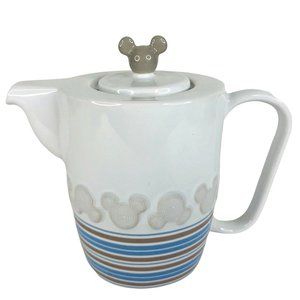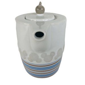 Walt Disney World Mickey Mouse Teapot Blue Brown Stripe White Thailand Unused