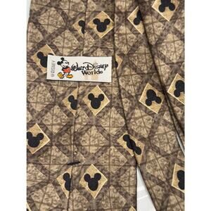 Walt Disney World Mickey Mouse Tie - 100% Silk - Brown/Gold - Mickey Mouse Face - 60” long - Great condition!