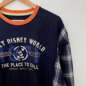 Walt Disney World Mickey Mouse Vintage Graphic Tee Plaid Flannel Long Sleeve Top