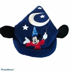 Nice Gently pre-loved clean Walt Disney World Disneyland Blue Velvet-Like Blue Wizard Hat. Size Youth. Lined. Stuffed Brim. Mickey Stars and Moon 3D Embroidered. Pointy tip. Mickey wars that stick out of hat. This is a very well made wizard hat and is super cute. Halloween or just because your child is a wizard ♥️
