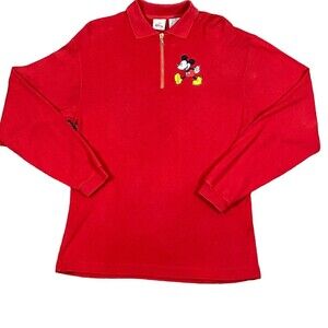 VINTAGE The Disney Store Walt Disney World Mickey Sweater Adult Small Red Sweatshirt Polo