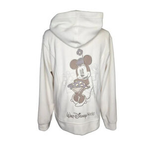 Walt Disney World Parks Authentic Minnie Mouse Cream Sweatshirt Hooded Zip XL