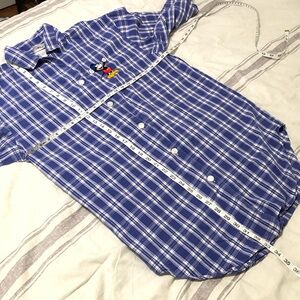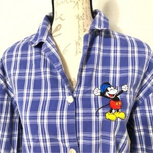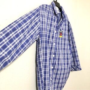 WDW Walt Disney World Blue and White Plaid Pajama Shirt Mickey Mouse embroidered