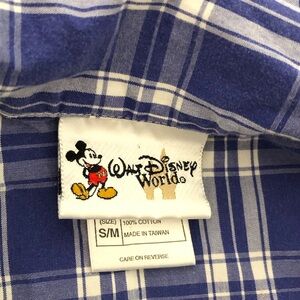 Walt Disney World Plaid Christmas Pajama Mickey Mouse Shirt S M blue white