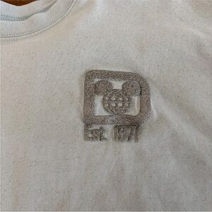 The Walt Disney World Retro “D” Blue Speckled Spirit Jersey Long-Sleeve Tee in XL is a vintage-inspired piece perfect for any Disney fan. Featuring the iconic 1971 Mickey Mouse logo, this unisex shirt is suitable for adults and comes in a classic blue color. Made by Spirit Jersey, this collectible item will surely be a standout addition to any Disney collection. Represent the magic of Disney with this timeless piece. The last photo is just a close up to show the speckled design on the shirt.