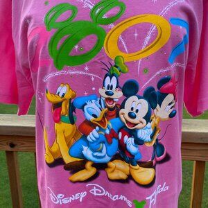 Disney Dreams 2007 T-Shirt Mickey Mouse Donald Goofy Pluto Cartoon Bright Pink 100% Cotton Florida