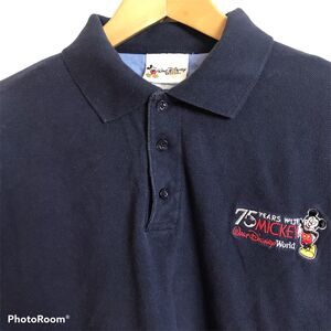 Walt Disney World 75 Years Navy Polo Shirt Men's Embroidered Mickey Size Small. 100% Cotton.