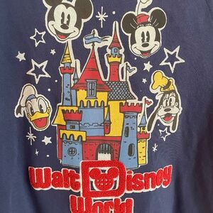 From the parks. Official Walt Disney World short sleeve Sweatshirt. Navy blue with castle and the Fabulous four on a sweatshirt material short sleeve shirt.