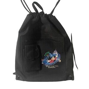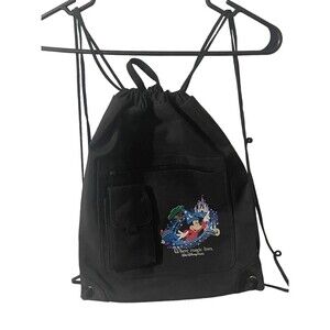 Walt Disney World Vintage Where Magic Lives Drawstring Black Backpack Cinch Bag