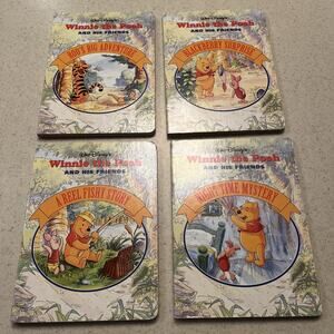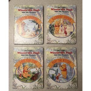 This product is a set of four board books featuring characters from Walt Disney's Winnie the Pooh franchise. The book feature stories and illustrations of Tigger, Piglet, and Roo, as well as other beloved characters from the Hundred Acre Wood. Published in 1994, these contemporary books are a perfect addition to any Disneyana collection, showcasing the charm and whimsy of the classic Pooh stories. Made in China, these books are a nostalgic and delightful treat for fans of all ages.