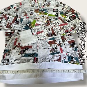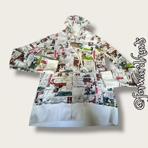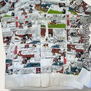 This Walt Disney World full zip hoodie is a fun and nostalgic piece, featuring an all-over comic strip print of Mickey and Minnie Mouse. Designed in a size large, this sweatshirt offers both comfort and style, making it a great choice for Disney fans.