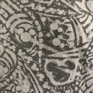 Walt Disney World short sleeve gray Mickey Mouse silhouette patterned T-shirt with intentionally distressed Walt Disney World printed across the front. Disney parks Hanes T-shirt. Laying flat measures 26 inches from shoulder to hem and 16.5 inches from armpit to armpit.