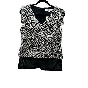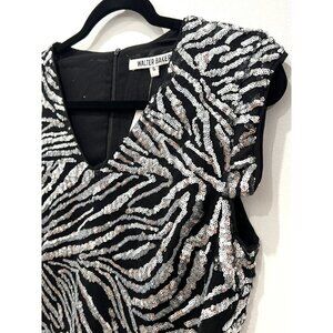 Walter Baker Akin Leopard Print Sequin V-neck Sleeveless high/low hem Top