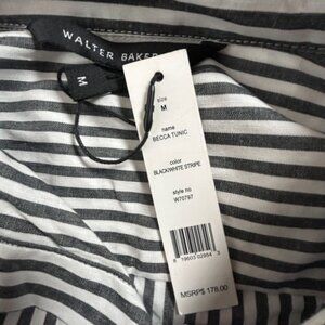 Walter Baker Becca Tunic Black/White Striped Floral Embroidered Medium New $178