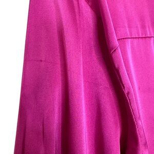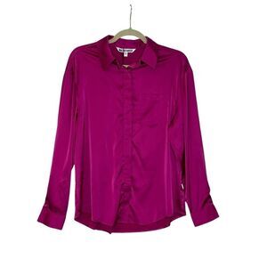 Gorgeous magenta satin button up long sleeve top. Hidden button placket, chest pocket, button cuffs