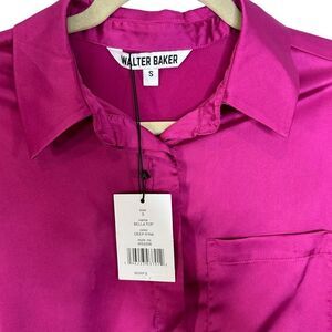 Walter Baker Bella Deep Pink Satin Button Up Top | Size S