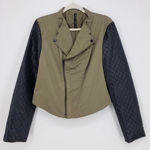 Walter Baker Bennett Moto Jacket L Asymmetrical Zip Up Faux Leather Green Black