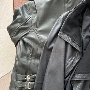 NOTE: This is a very dark green. A previous buyer didn't know that Walter Baker is known for a very dark green that is called "Olive Green" or "basil" in their own stores. It is close to black but definitely not black--I have included a picture of this jacket next to an actual black leather jacket for reference. Both jackets in the picture are lamb or "glove" leather.