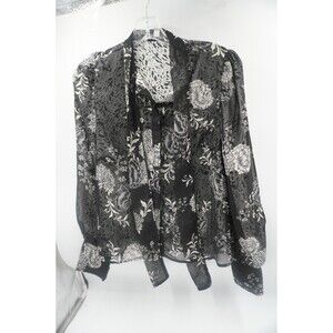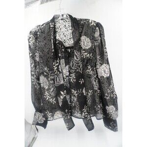 Walter Baker Black & White Floral Botanical Print Blouse Ruffle Tie Neck Size S