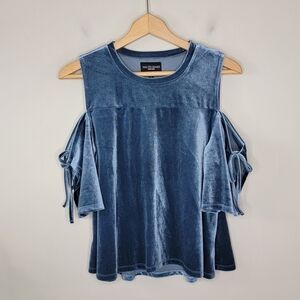 Walter Baker | Blue Velvet Cold Shoulder Top.