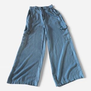 Switch out your go-to denim with this ultra flared pair of cargo pants that feels extra chic and effortless. Zip fly button closure Slant pockets Belt loops Cargo patch pockets Flared leg 100% lyocell Machine wash, line dry