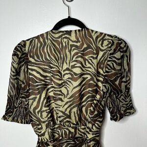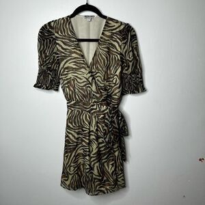 Walter Baker Brani Puff Sleeve Zebra Mini Wrap Dress Size M Retro Y2K Designer