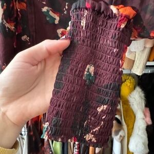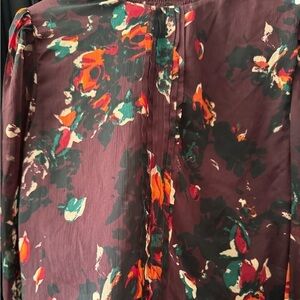 Beautiful top from designer Walter baker. Multicolor dark florals with elastic neck and wrists. Two small button and elastic closures which are broken but can easily be fixed.