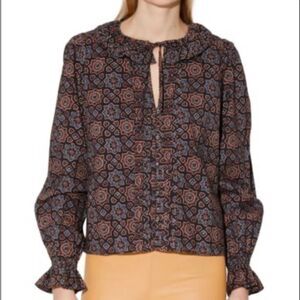 New with tags. Please see all photos. Walter Baker Cameron Brown Multi Mosaic Top Women’s Sz XL. Ruffled roundneck