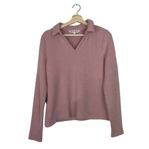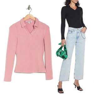 Walter Baker Collared V-Neck Ribbed Knit Long Sleeve Sweater Top Light Pink - XL