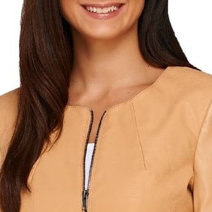 Faux with a finish. This cropped faux leather jacket from Walter Baker creates a sleek silhouette that looks chic on any shape. Texturing on the front and zipper details at the sleeve add to the tough but tender appeal. Wear this with skinny jeans and a tank and prepare to wow. From View by Walter Baker.
