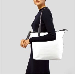 Walter Baker Curateur White Canvas Black Leather Trim Tote Shoulder Bag Brand New