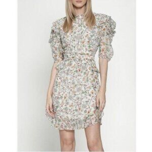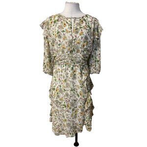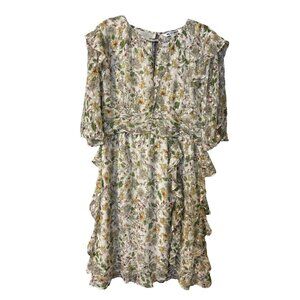 Walter Baker Dress 12 Flowy A Line V Neck Ruffled Flutter Romantic Floral NEW