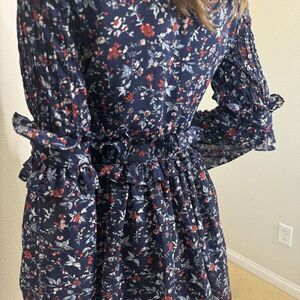 Walter Baker Dress Size 2 Blue Floral Print Diana Tiered Ruffle Layered Nautical