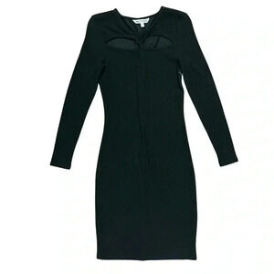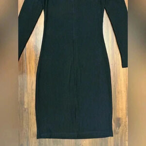 Walter Baker Dress Size Large Black Twist Front Ribbed Knit Bodycon Midi Length