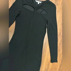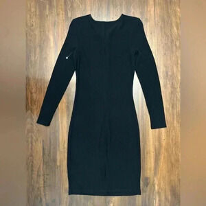 Walter Baker Dress Size Large Black Twist Front Ribbed Knit Bodycon Midi NWOT