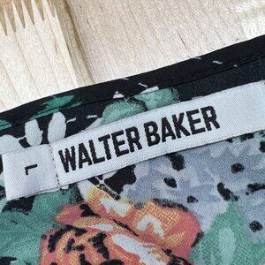 Walter Baker Floral Asymmetric Dress Ruffled Shoulders Black Multi Size Large
