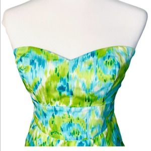 Walter Baker Floral Green Blue Strapless Dress