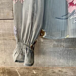Walter Baker Floral Smocked Ruffle Blouse Gray Pink Flounce Feminine Romantic M