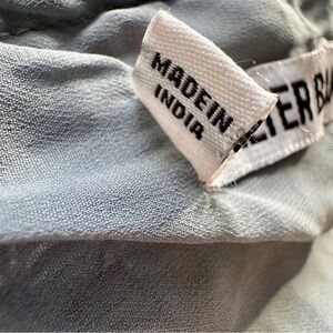 This Walter Baker blouse is a great mix of chic and feminine. It features a high ruffle neckline, gorgeous front and back chest smocking details, ruffles at the shoulder and sleeve cuffs, keyhole button back closure and a floaty, relaxed shape bodice. Metallic thread gives the fabric hints of sparkle. Arms are sheer, bodice is lined.