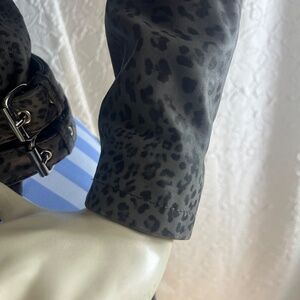 Walter Baker Francis Leopard Print Cropped Leather Moto Jacket Gray Black