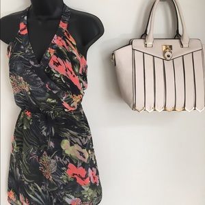 100% Polyester Elastic Waist : Surplice V Neck: Allover Print: Contains Lining