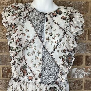 Walter Baker Lola Maxi Dress Ivory Vintage Rose Ruffle Cap Sleeve Size 6