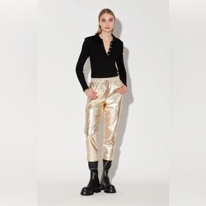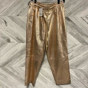 Walter Baker | Minh Lamb Leather Gold Cropped Jogger Size XL NEW
