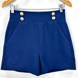 Walter Baker Molly High Waist Twill Shorts – Navy Blue with Gold Buttons Size 2